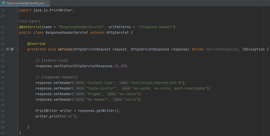 main/java/hello.servlet/basic/response/ResponseHeaderServlet 생성