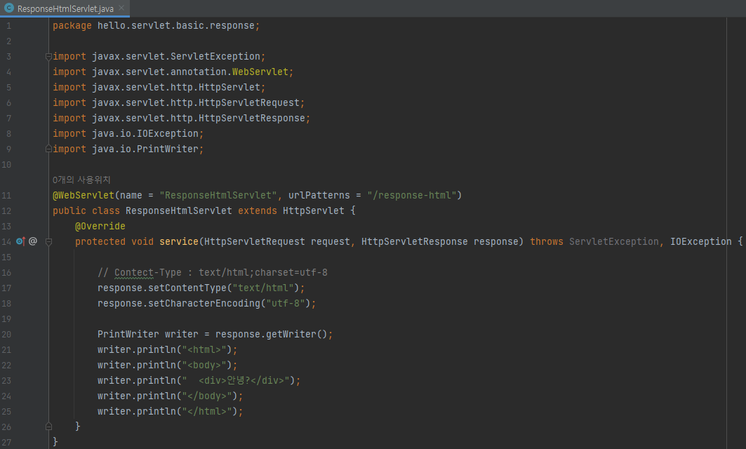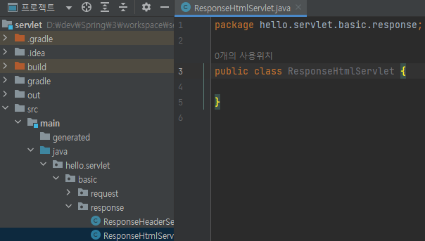 main/java/hello.servlet/basic/response/ResponseHtmlServlet 생성