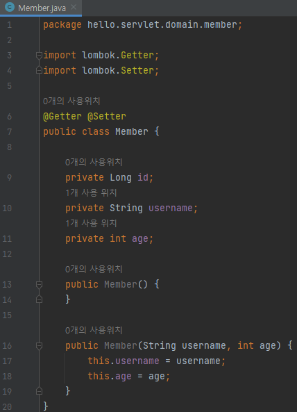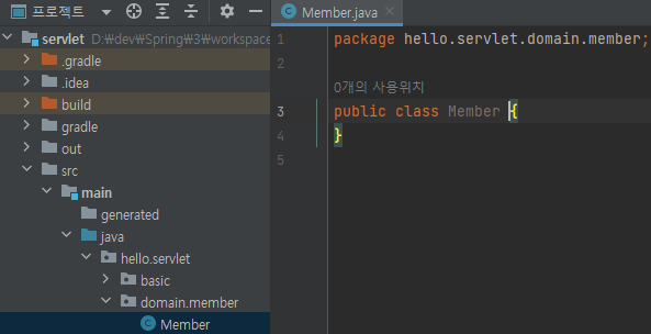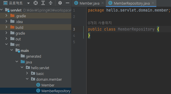 main/java/hello.servlet/domain/member/MemberRepository 생성