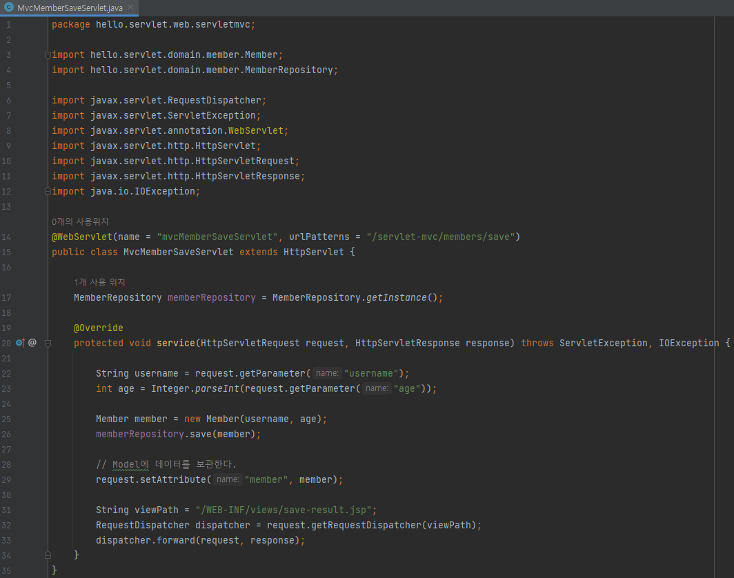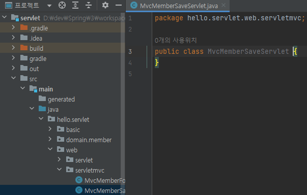 main/java/hello.servlet/web/servletmvc/MvcMemberSaveServlet 생성