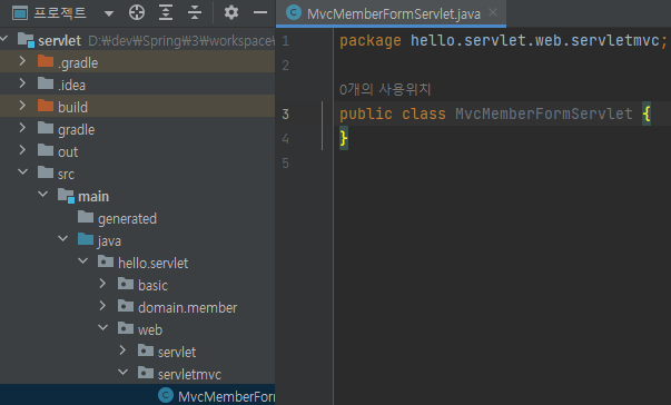 main/java/hello.servlet/web/servletmvc/MvcMemberFormServlet 생성