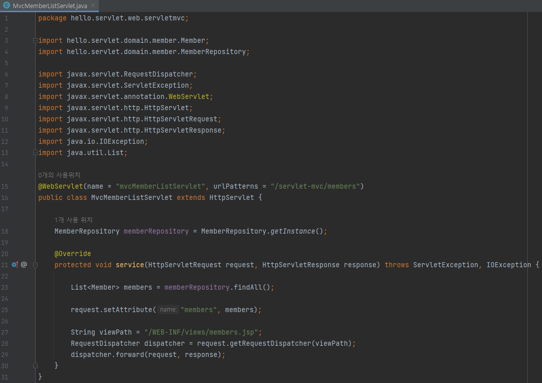 main/java/hello.servlet/web/servletmvc/MvcMemberListServlet 생성