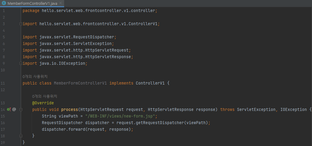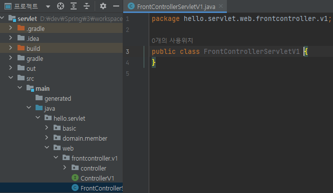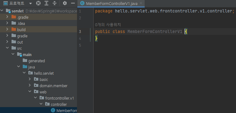 main/java/hello.servlet/web/frontcontroller/v1/controller/MemberFormControllerV1 생성