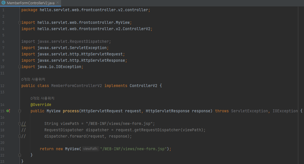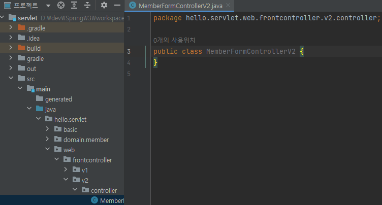 main/java/hello.servlet/web/frontcontroller/v2/controller/MemberFormControllerV2 생성