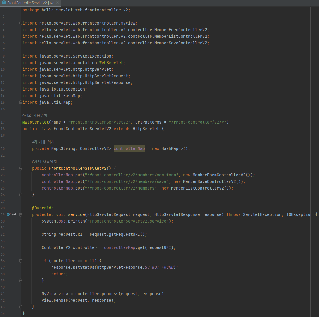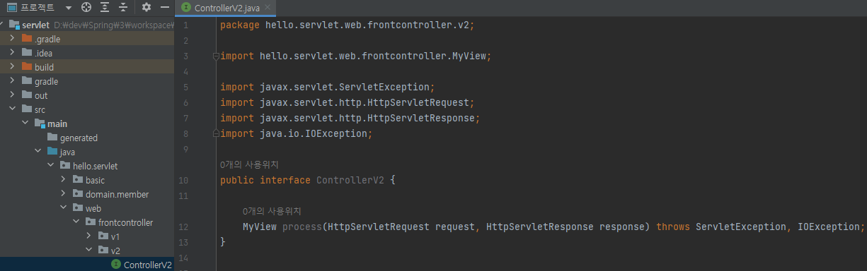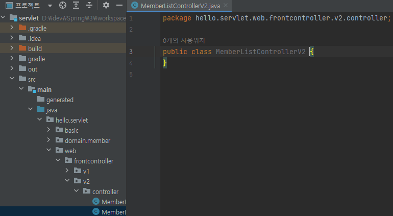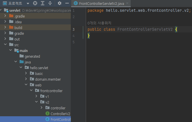 main/java/hello.servlet/web/frontcontroller/v2/FrontControllerServletV2 생성