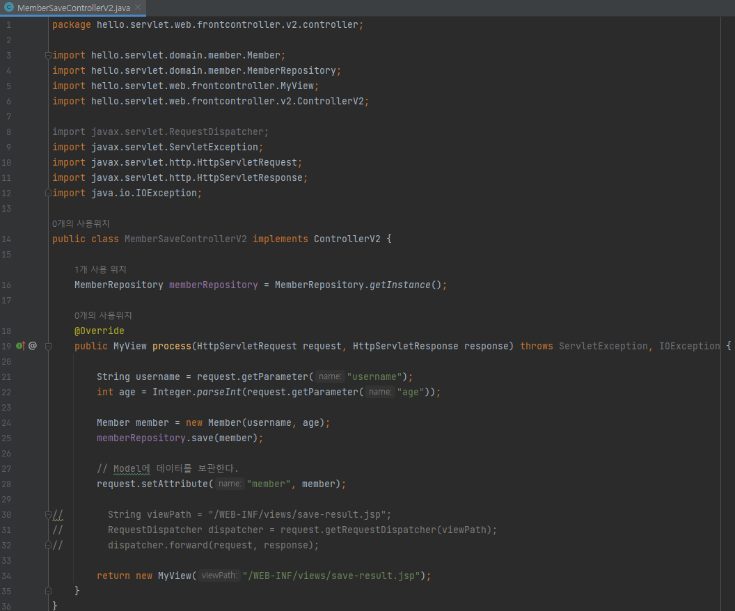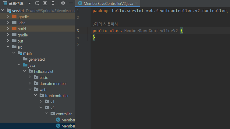 main/java/hello.servlet/web/frontcontroller/v2/controller/MemberSaveControllerV2 생성