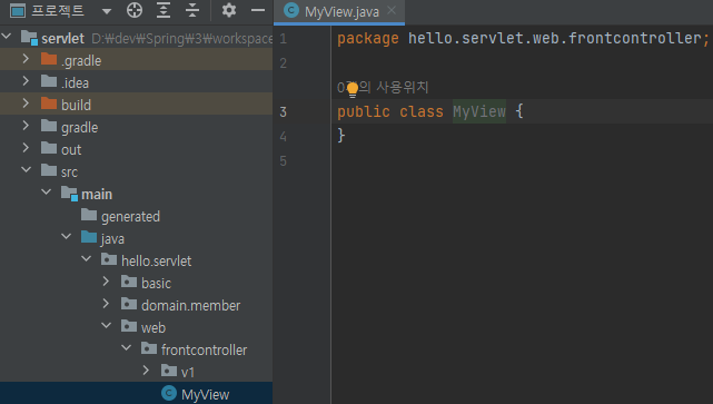 main/java/hello.servlet/web/frontcontroller/MyView 생성
