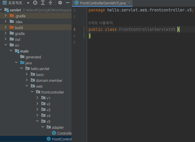 main/java/hello.servlet/web/frontcontroller/v5/FrontControllerServletV5 생성