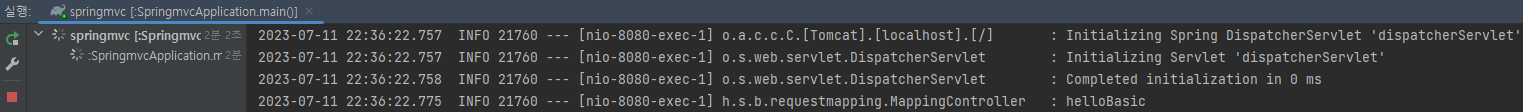 매핑 : /hello-basic URL 요청 : /hello-basic