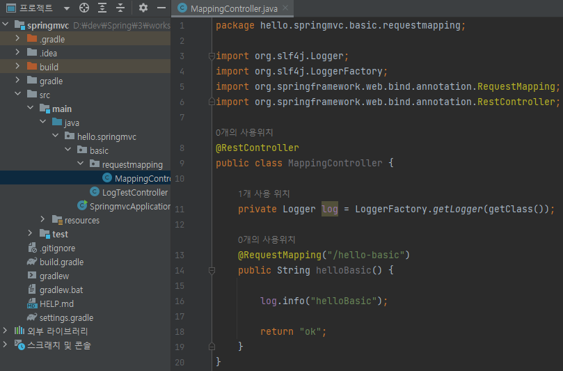 main/java/hello/springmvc/basic/requestmapping/MappingClassController 생성
