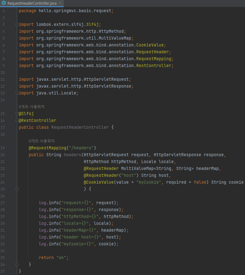 main/java/hello/springmvc/basic/request/RequestHeaderController 생성