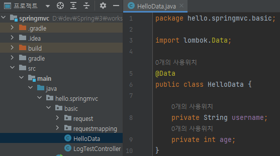 @Data에 ToString이 들어있어 log.info("helloData={}", helloData);가 가능