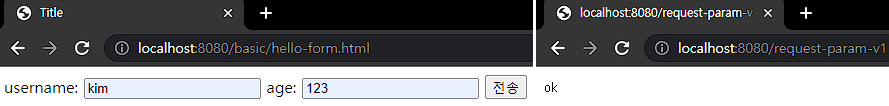 HttpServletRequest의 request.getParameter()를 사용하면 다음 두가지 요청 파라미터를 조회할 수 있다.