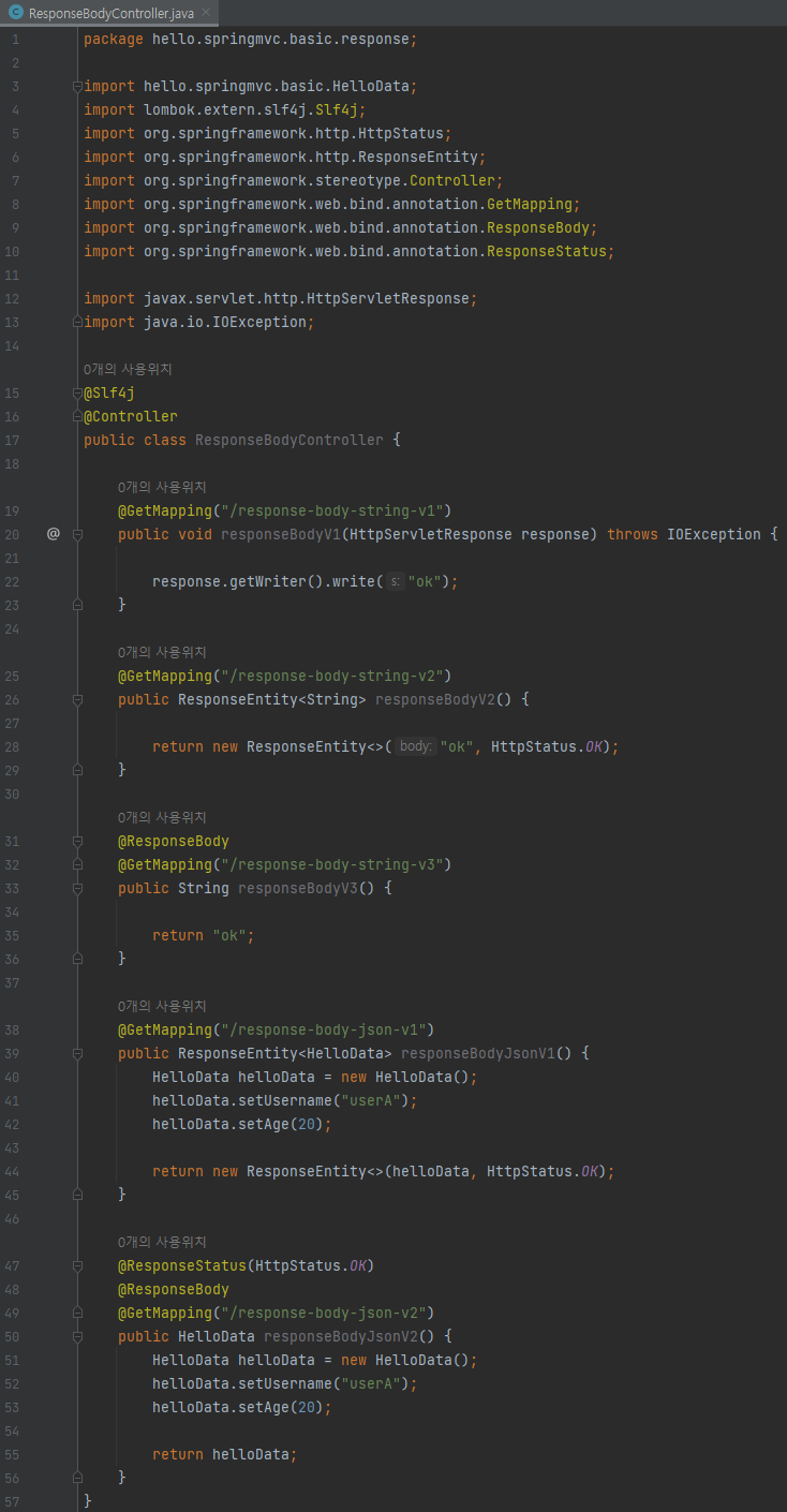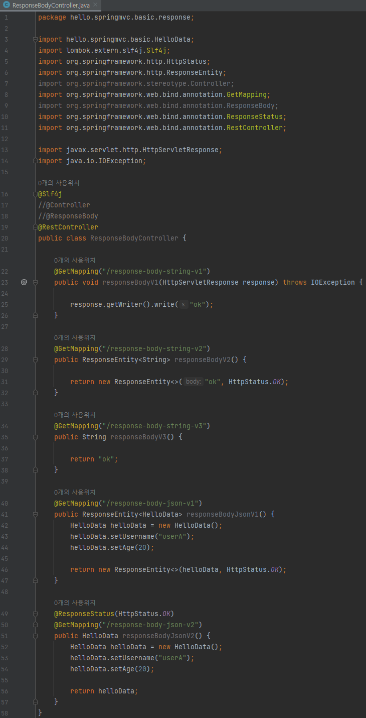 main/java/hello/springmvc/basic/response/ResponseBodyController 생성