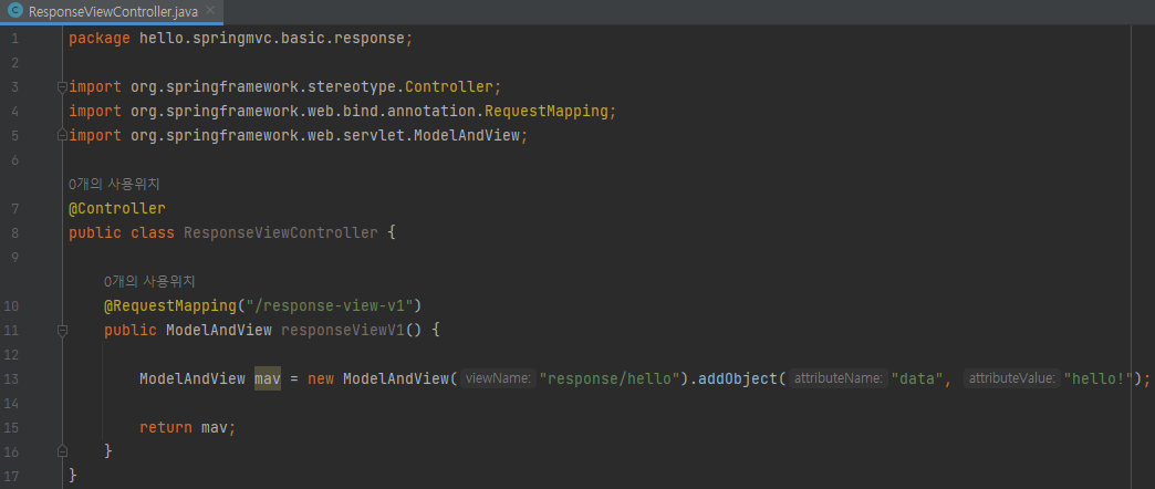 main/java/hello/springmvc/basic/response/ResponseViewController 생성