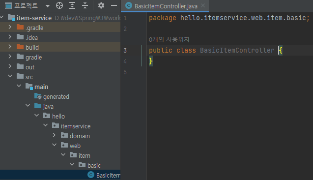 main/java/hello/itemservice/web/item/basic/BasicItemController 생성