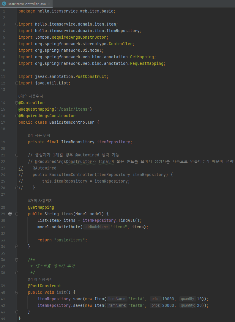 public BasicItemController(ItemRepository itemRepository) {