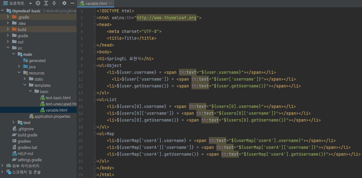 타임리프에서 변수를 사용할 때는 변수 표현식을 사용한다