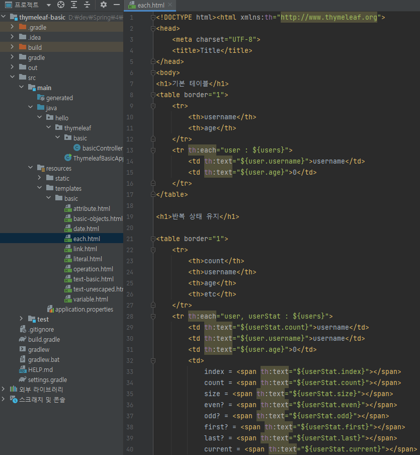 main/resources/templates/basic/each.html 생성