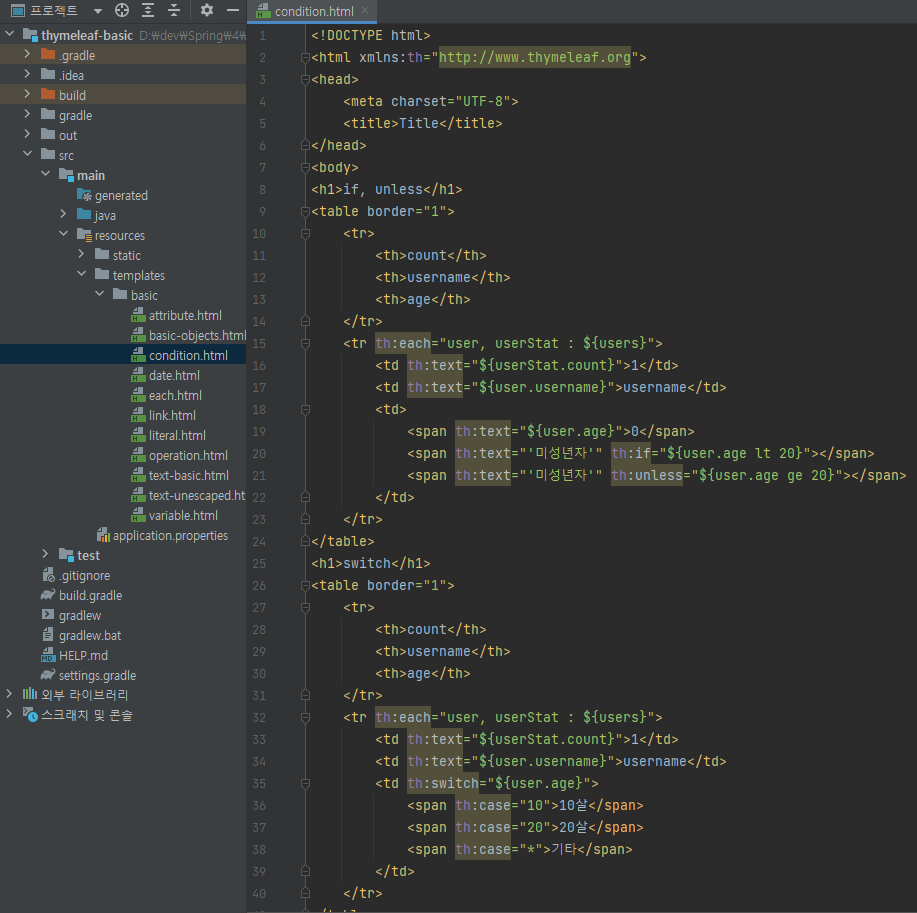 [김영한 스프링] 07. 타임리프 기본 기능 - 조건부 평가 & 주석 & 블록Spring/스프링 MVC 2편 - 백엔드 웹 개발 활용 기술 2023. 8. 11. 21:09