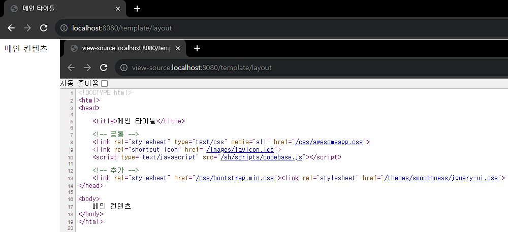 - 공통 부분은 그대로 유지되고, 추가 부분에 전달한 <link>들이 포함된 것을 확인할 수 있다.