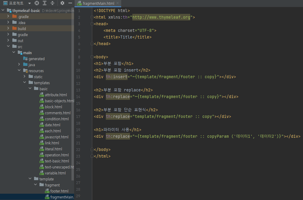 th:fragment가 있는 태그는 다른곳에 포함되는 코드 조각으로 이해하면 된다.