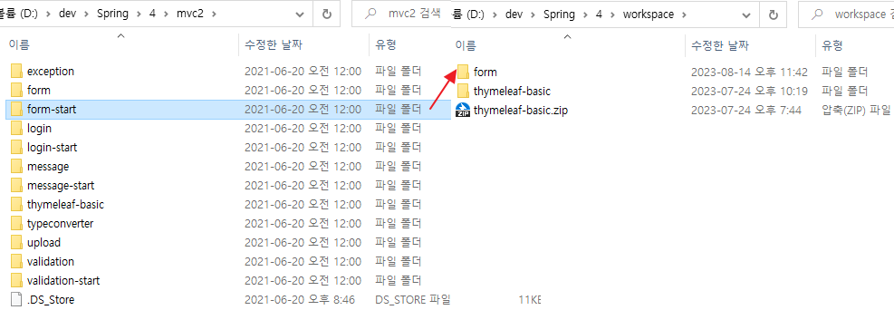 다운로드한 파일 중 "form-start"를 원하는 곳으로 이동 후 "form"으로 이름변경