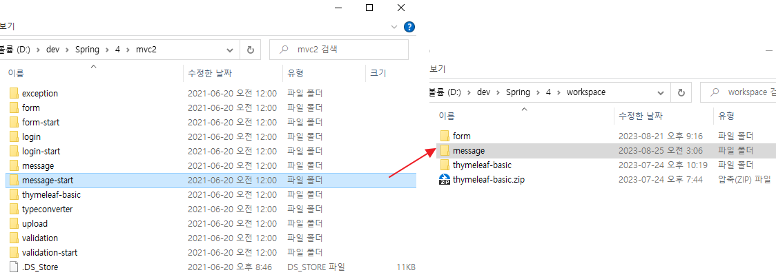 다운로드한 파일 중 "message-start"를 원하는 곳으로 이동 후 "message"로 이름변경