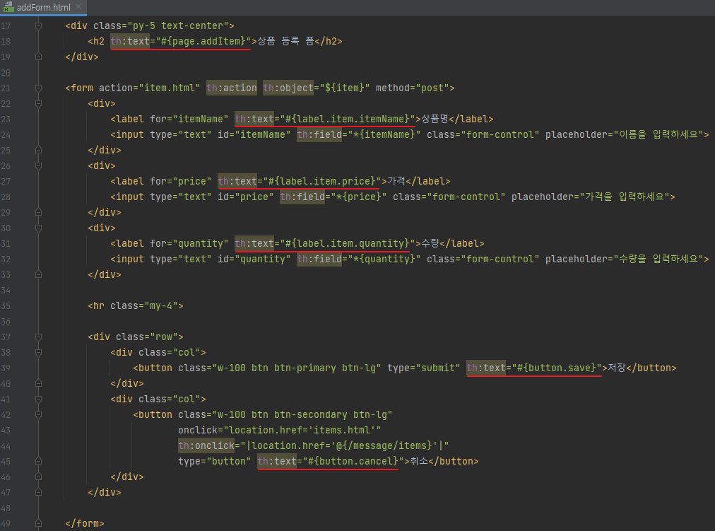 - <label for="itemName" th:text="#{label.item.itemName}">상품명</label>