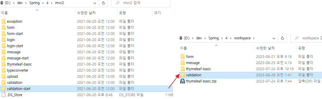 다운로드한 파일 중 "validation-start"를 원하는 곳으로 이동 후 "validation"으로 이름변경