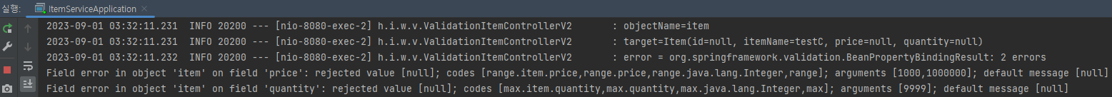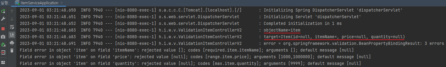 log.info("objectName={}", bindingResult.getObjectName()); log.info("target={}", bindingResult.getTarget());
