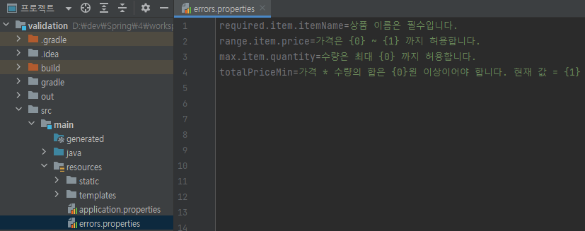messages.properties를 사용해도 되지만, 오류 메시지를 구분하기 쉽게 errors.properties라는 별도의 파일로 관리해 보자.