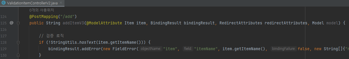 @ModelAttribute Item, item 뒤에 BindingResult bingingResult가 위치하기 때문에 objectName이 "item"인것을 이미 알고 있음