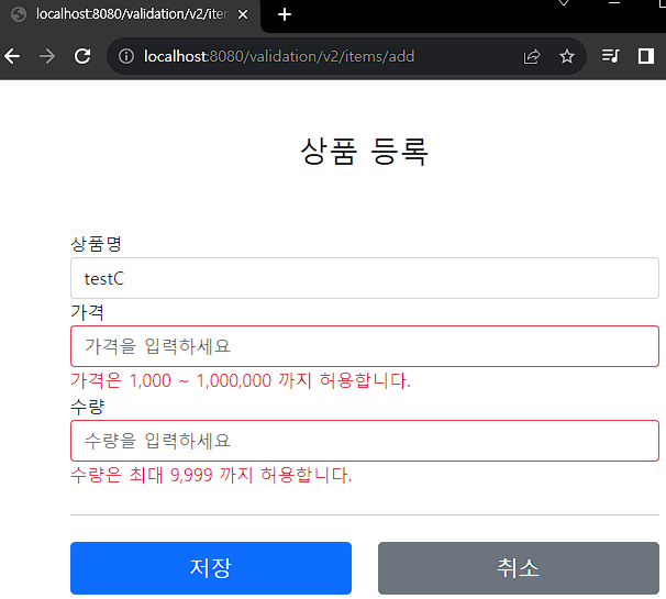 required.item.itemName=상품 이름은 필수입니다. range.item.price=가격은 {0} ~ {1} 까지 허용합니다. max.item.quantity=수량은 최대 {0} 까지 허용합니다. totalPriceMin=가격 * 수량의 합은 {0}원 이상이어야 합니다. 현재 값 = {1}