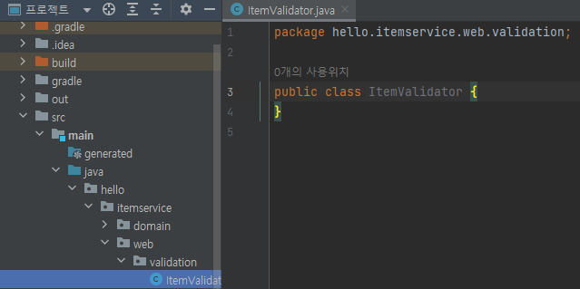 main/java/hello/itemservice/web/validation/ItemValidator 생성