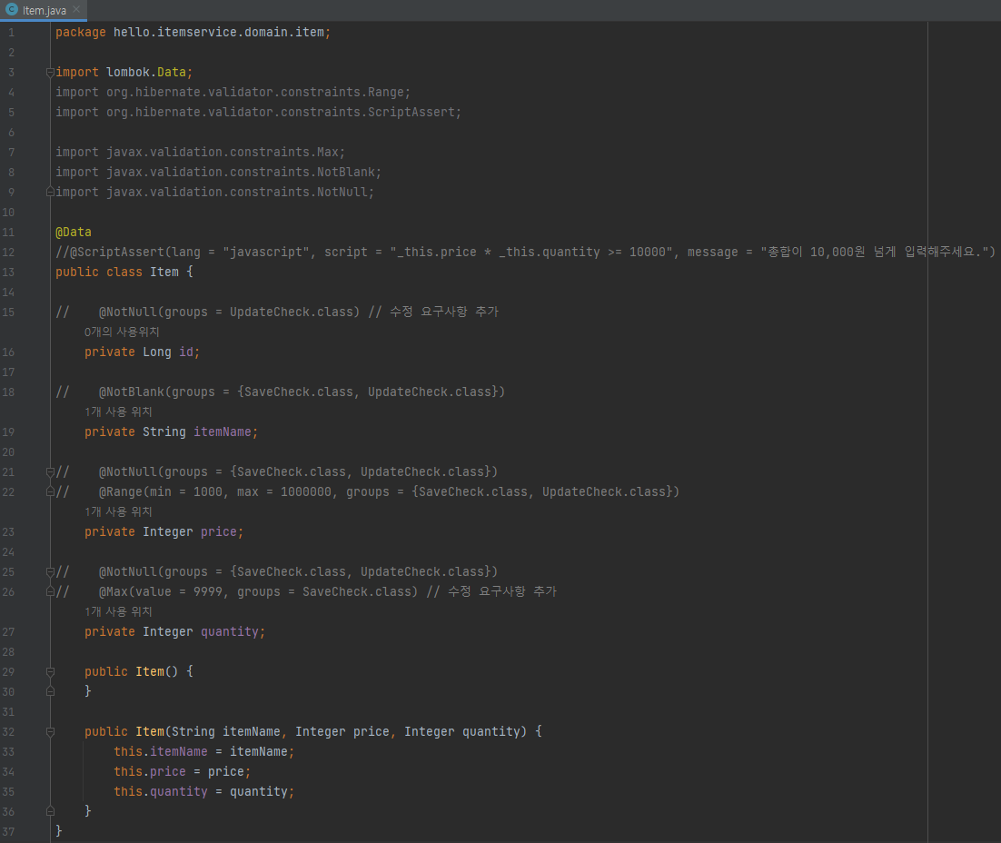 이제 Item의 검증은 사용하지 않으므로 검증 코드를 제거해도 된다.