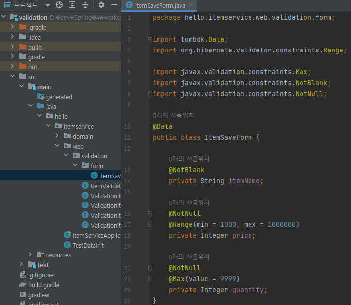 main/java/hello/itemservice/web/validation/form/ItemSaveForm 생성
