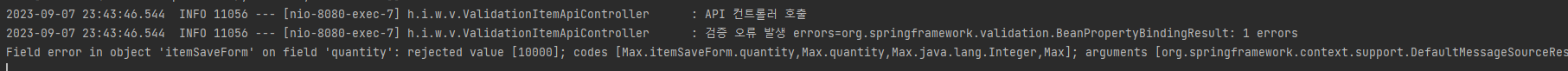 로그를 보면 검증 오류가 정상 수행된 것을 확인할 수 있다.