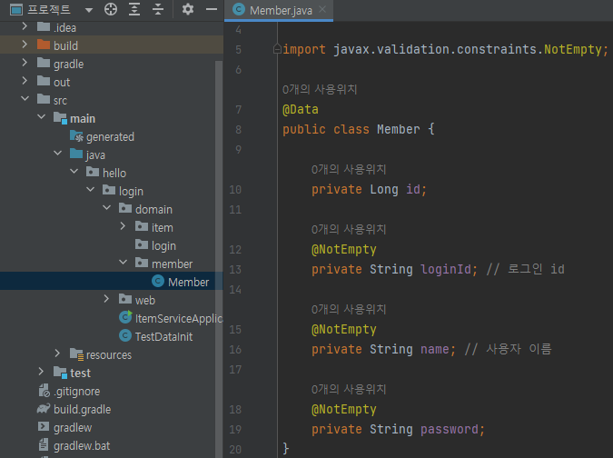 main/java/hello/login/domain/member/Member 생성