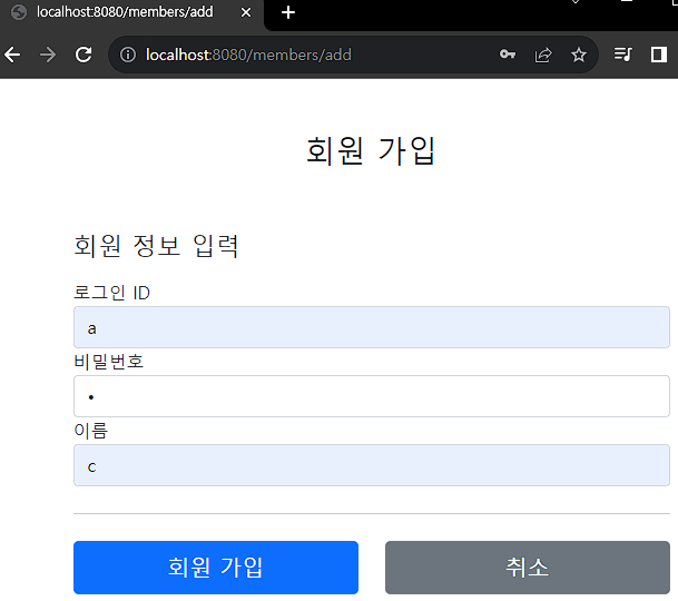 회원 가입 뷰 템플릿 - addMemberForm.html