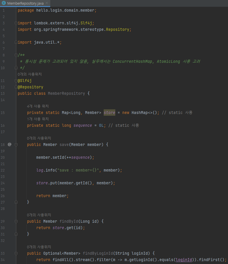 main/java/hello/login/web/member/MemberRepository 생성
