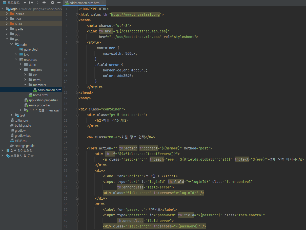 main/resources/templates/member/addMemberForm.html 생성