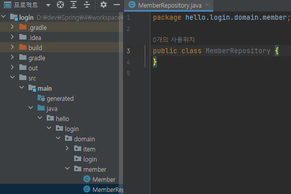 main/java/hello/login/domain/member/MemberRepository 생성