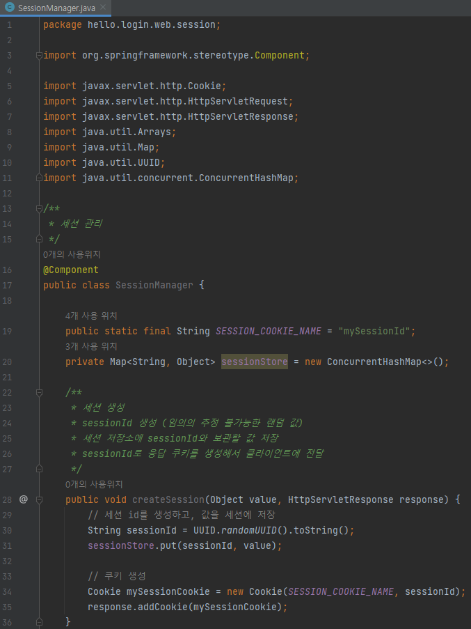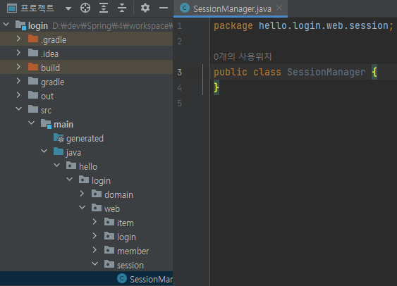 main/java/hello/login/web/session/SessionManager 생성