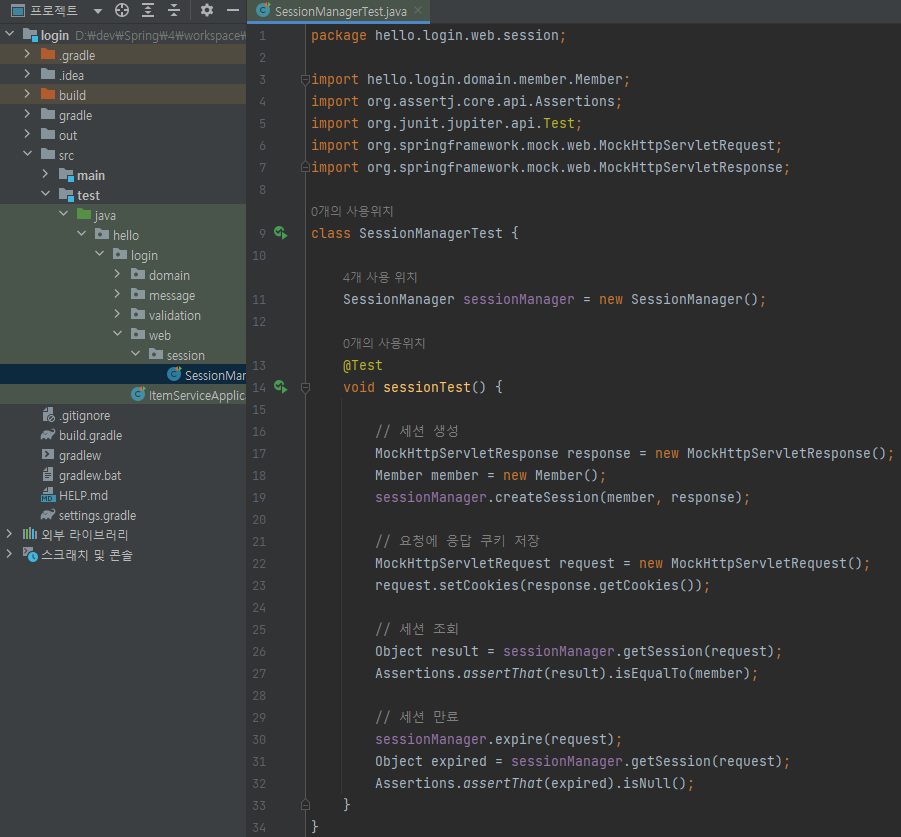 test/java/hello/login/web/session/SessionManagerTest 생성