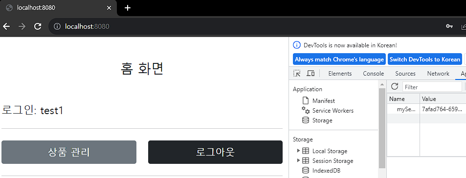 - 클라이언트가 요청한 sessionId 쿠키의 값으로, 세션 저장소에 보관한 값 조회