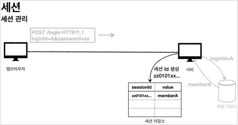 - 세션 저장소에 sessionId와 보관할 값 저장