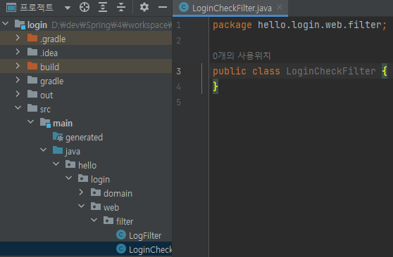 main/java/hello/login/web/filter/LoginCheckFilter 생성