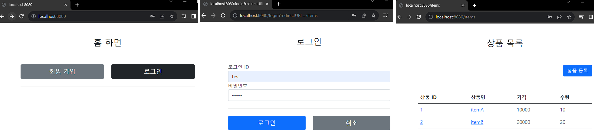 앞에서 로그인을 하지 않은 사용자에게는 상품 관리 버튼이 보이지 않기 때문에 문제가 없어 보인다. 그런데 문제는 로그인하지 않은 사용자도 다음 URL을 직접 호출하면 상품 관리 화면에 들어갈 수 있다는 점이다.