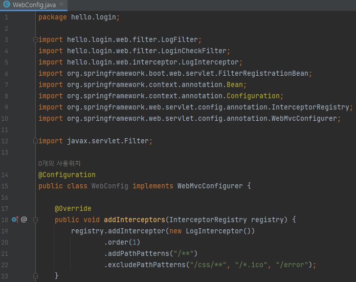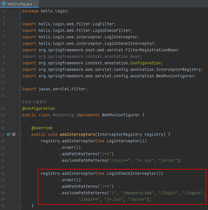 WebConfig - 인터셉터 등록